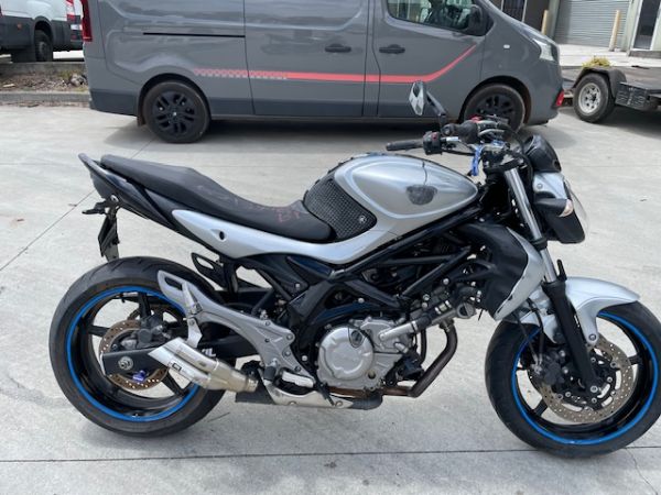 theres a good fun bike , this one was not crashed damaged rather stolen/recovered, frame forks and wheels all seem fine, has motard rims vin and compliance plate all okay, starts and rides great, has a delkevic exhaust