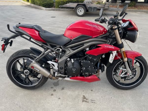 no mater what year the speed triples are great bikes,this is the later model , this bike is absolutely mint well kept, this is not a crashed bike was stolen/recovered, comes with key starts and rides great, frame forks and wheels all seem fine, has good front and rear tyres, has a scorpion exhaust, rear rack bars, r@g handlebar ends and mirrors, aftermarket levers and i think heated grips, also has quick shifter, bike may have fallen off side stand as very small mark on left engine cover and handlebar end