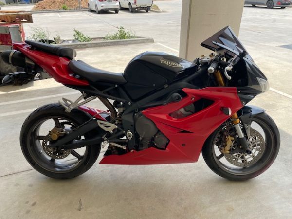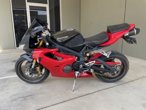 good solid bikes this is the newer shape side exhaust, this is the r model with the extra goodies, not many left around, this one comes with key starts and rides, frame forks and wheels all seem fine (other than noted below, this one has arrow pipe, carbon front and rear guards and side inserts, vsv levers, triumph frame sliders, tinted screen, bar end protectors, gb racing covers, and axle protectors, has rear wheel pick ups, and factory quick shifter
