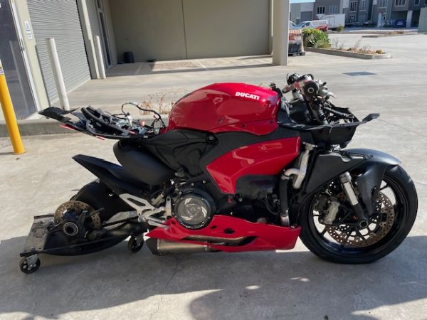 great bikes v2 and this is the new 2025 model , frame forks and wheels all seem useable other than noted below, front rim has a dint on right outer edge (may role out) and scratched left side, bottom triple clamp broken , forks seem okay but worth a check before use, no front fairings headlight so forth, dash is there but broken so not sure on kms , expect to be low based on age, right hand controls scratched, tank damaged, needs right rider peg, right plastics scratched, right exhaust damaged, rear fairings/tailight damaged and no rear seat, rider seat torn, now bike comes with a key but havent started bike