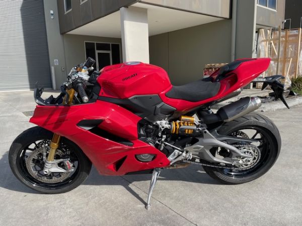 yes we get everything, this is the brand new v2s model with dual swingarm - this is the s too with ohlins around, frame forks and wheels all seem fine, near new tyres