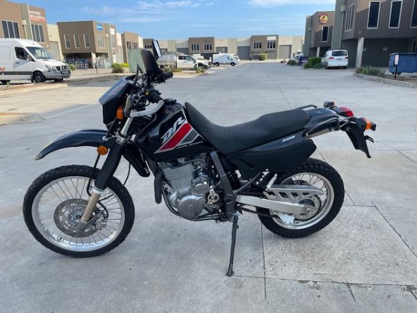 good solid bikes this one has gone for a tumble, frame seems usable but has a hole right side from handlebar end and rest scratched around, forks seem usable but heavily scratched around, wheels seem okay, and okay tyres, has a yoshimura exhaust but damaged, has a super moto exposed right engine cover but scratched.