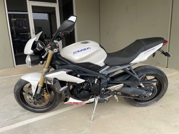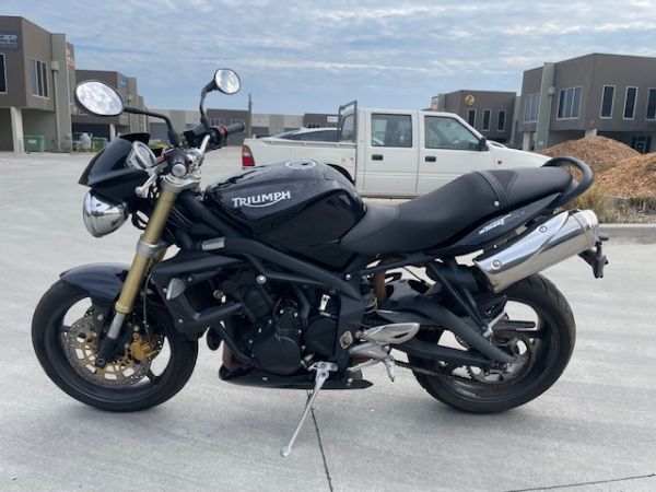 early model 675 street, great bikes, this one comes with key low kms, starts and motor sounds fine,frame forks and wheels all seem fine, just okay front tyre and good rear
