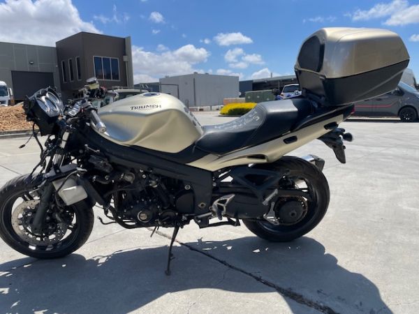 no mater what year the speed triples are great bikes,this is the later model , this bike is absolutely mint well kept, this is not a crashed bike was stolen/recovered, comes with key starts and rides great, frame forks and wheels all seem fine, has good front and rear tyres, has a scorpion exhaust, rear rack bars, r@g handlebar ends and mirrors, aftermarket levers and i think heated grips, also has quick shifter, bike may have fallen off side stand as very small mark on left engine cover and handlebar end