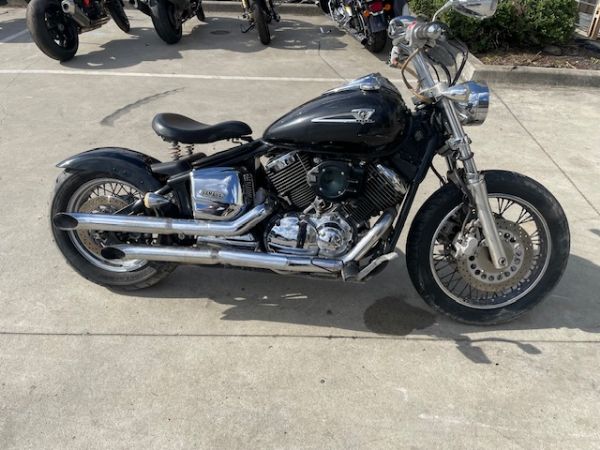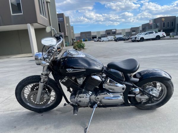great mid size cruiser, this is the 1100 good solid bike this one was a bobber style, has had a little of a front ender, forks are damaged, front rim seems okay and just okay tyre, okay rear rim, has aftermarket air filter and exhaust, no front guard, handlebars bent, tank dinted/scratched, rear guard bent, rest of bike has wear and tear around , no key with this one (but believe not conded , not sure on kms and havent started bike
