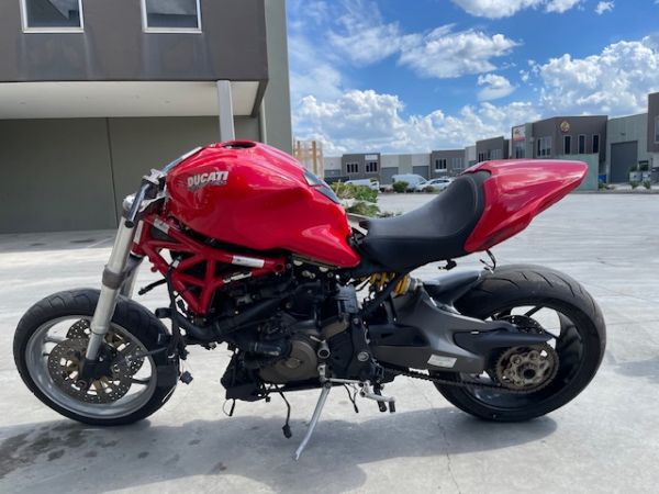 good cc and good monster, this one was stolen/recovered, vin /compliance numbers still there untouched, frame forks and wheels all seem fine, has just okay front tyre and little bit better rear tyre, has sc project exhaust.