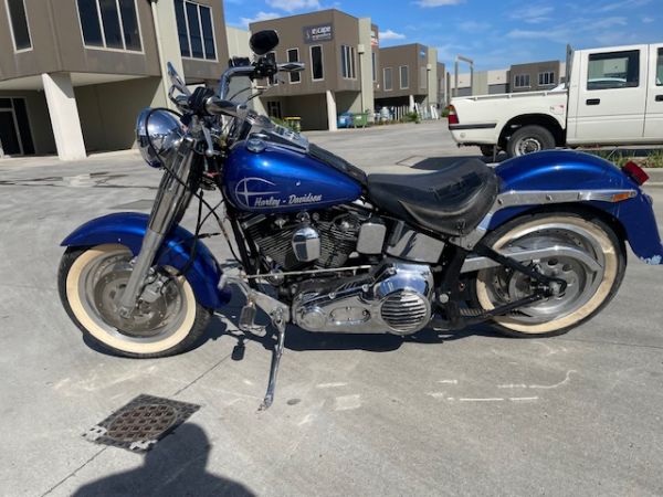 so overall appears to be an evo fatboy, bike has no key but starts and motor sounds fine, frame forks and wheels all seem fine, has vance and hines pipes and aftermarket airfilter, bike has scratches/damage to guards, handlebars losose and right hand controls scratched, missing rear brake pedal, right peg and airfilter scratched, seat has tears, few marks down right side, speedo cable doesnt appear connected and battery needs charge/replace, rest fo bike rpesents okay needs good clean up cut/polish so forth